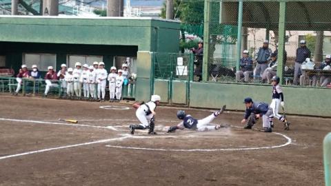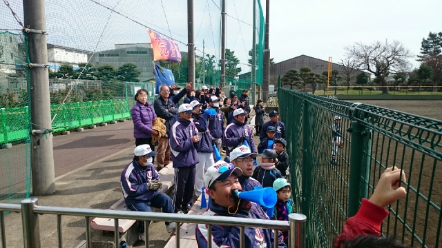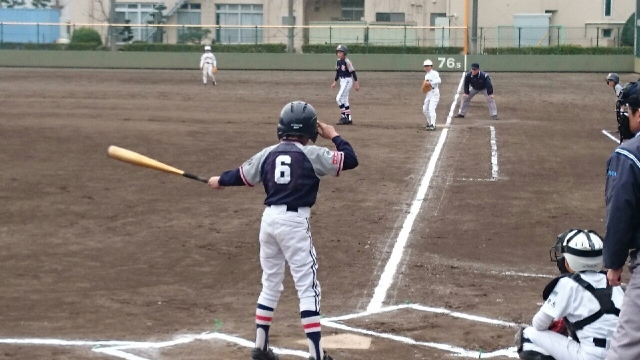 | 卒業送別大会 準々決勝 相手は成瀬少年野球教室 初回の攻撃、タイガのヒットで1アウト満塁のチャンスを作るも、 5-2-3のダブルプレーでチャンスを潰す。 2回には先頭のカツユキがヒットで出塁するも後続続かず無得点。 3回、嫌な流れの中、この試合1番に入ったトウキが右中間を破るスリーベースでチャンスメイクし、 その後、タイガがレフト前タイムリー、シュウヤがセンター前タイムリー、カズマサがレフト前タイムリー などで一挙4得点。 4回にはまたも先頭のトウキが左中間にツーベースを放ち、続くヨウタがセンター前ヒット、 タイガの内野安打で追加点。 5回には代打ユウトの左中間へのツーベースが飛び出し、トウキがタイムリーでダメ押し。 6回にはシュウヤがレフト前ヒット、カツユキがツーベースでチャンスを作るもあと1本が出ず。 投げてはタイガートウキのリレーで2安打完封勝利。 次戦は19日の土曜日、準決勝、勝てば午後から決勝と、6年生にとっては少年野球での最後の試合になります。 悔いの残らぬように、全力でプレーし、最後はみんなで笑えるといいね |