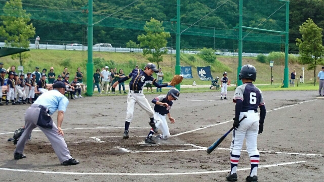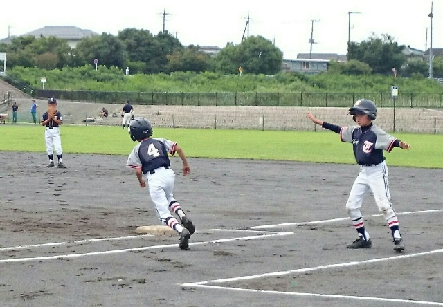 | 関東学童神奈川県大会 準々決勝 相手は横須賀代表 鷹取トップス 初回、2回と安打を重ね、序盤に効率よく7点先行。 投げても2安打完投で快勝でした。 しかし何でもないゴロをエラーしたり、 挟殺プレーでタッチに行ってボールを落としてしまったりと、 凡ミスが出て点を取られてしまいました。 そうしたミスを一つずつ無くしていかないと、この先は勝てません。 せっかくピッチャーが素晴らしいパフォーマンスを見せてくれているのに、 まわりが足を引っ張っては勝てる試合も勝てないぞ! 次戦は7/20 厚木玉川球場で準決勝 VS湘南台クローバーズです。 勝てば続けて決勝戦です。さぁ神奈川のてっぺん取りに行こうぜ |