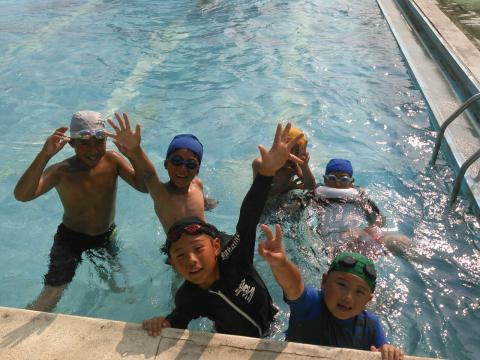 その頃、5年生以下は酷暑の中、午前中練習の後、午後からプールタイム!