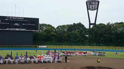 終了後、そのまま若鮎大会の開会式がおこなわれる平塚球場へGO!