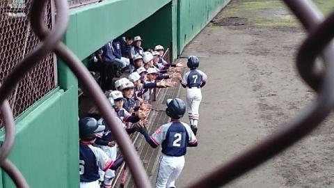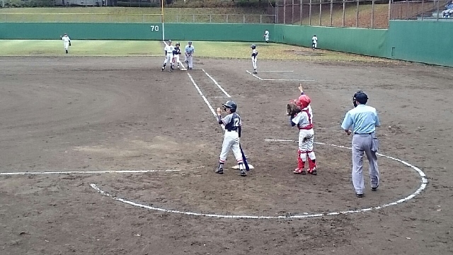 | 県央県北大会 1回戦 相手は大和市代表 北大和ドリームス 県央県北地区の代表チームが集うこの大会。 6年生にとって最後の上部大会です。 初回の攻撃、相手ピッチャーの剛速球に戸惑いながら3人で片づけられてしまうが、 2回にタツキの2B、シュウヤのシングル、タカトが2Bの3連打で2点を先制。 5回にはシュウイチのヒットを足がかりにトウキの犠牲フライなどでさらに2点を追加。 6回にもシュウヤの本日2本目のヒットからさらにダメ押しの1点。 投げてはタカト-タイガのノーヒットリレーで快勝です。 打線もあれだけの速いピッチャーから安打を重ねられたのは自信になったのではないでしょうか。 次戦は2回戦 海老名市代表 中新田ベアーズです。 |