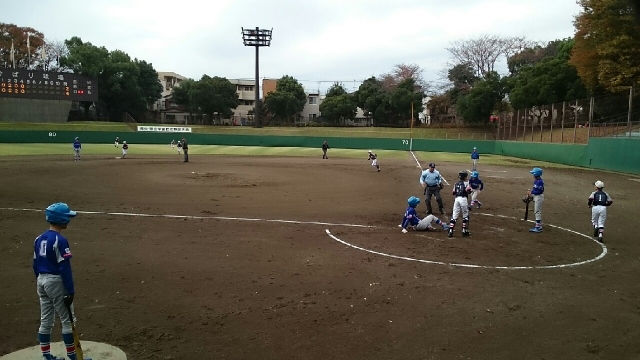 2015/11/8会場:スポーツ広場 鈴川杯 1回戦 Team 1 2 3 4 5 6 7 8 9 10 11 12 R H E 高部屋 0 7 0 9                 16     湘南エース 0 0 0 0                 0        鈴川杯 1回戦 相手は湘南エース 諸事情により相手は4年生以下のチーム編成。 ならばこちらも4年生中心のメンバーで挑む。 2回に四球を足がかりに7点。 4回にも一挙9点を奪取。 投げてはリュウタロウールキの継投でノーヒットでシャットアウト。 快勝しました。 相手4年生ピッチャーは将来が楽しみな子でした。 また来年、対戦してみたいです。   ...