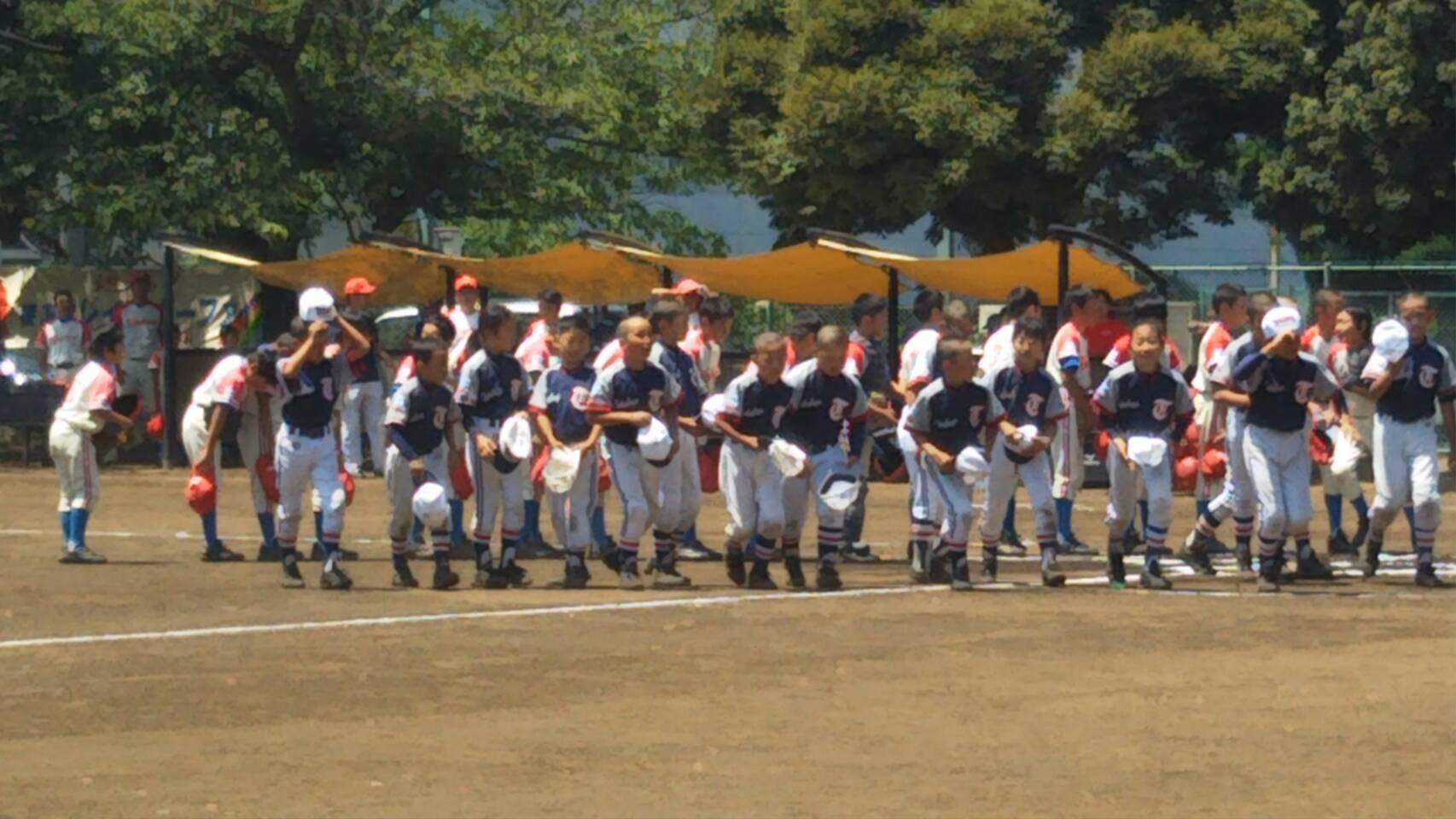 2017年6月4日 ●試合目 会場:追浜第3球場     Team 1 2 3 4 5 6 7 8 9 10 11 12 R H E 高部屋A 0 0 0 1 0               1     レインボーファイターズ 2 0 3 3 ×               8     戦評 第42回スポーツ少年団軟式野球交流大会 神奈川予選 去年、この大会で優勝し、連覇を目指すこの試合。 1回戦は横須賀の強豪、レインボーファイターズ。 先発はリュウタロウ。 初回2番にDBを与えた後、連打を浴び、守備の乱れもあり、いきなり2失点。 2回にも先頭から2連打を浴び、ここでルキにスイッチ。 後続を抑え0点で抑えるも、3回・4回にはエラーもあり3点ずつ献上。 攻撃ではルキのホームラン、コウセイのヒットのみに封じ込まれ、 あえなくコールド負け。 緊張していたのか、攻撃、守備でもいつもの調子が見られず、 サインミスなどもあり、いいところなく終わってしまったこの試合。 3年生2人をスタメン起用しなければならないチーム事情もあるが、 あまりにも力の差を見せつけられた試合でし...