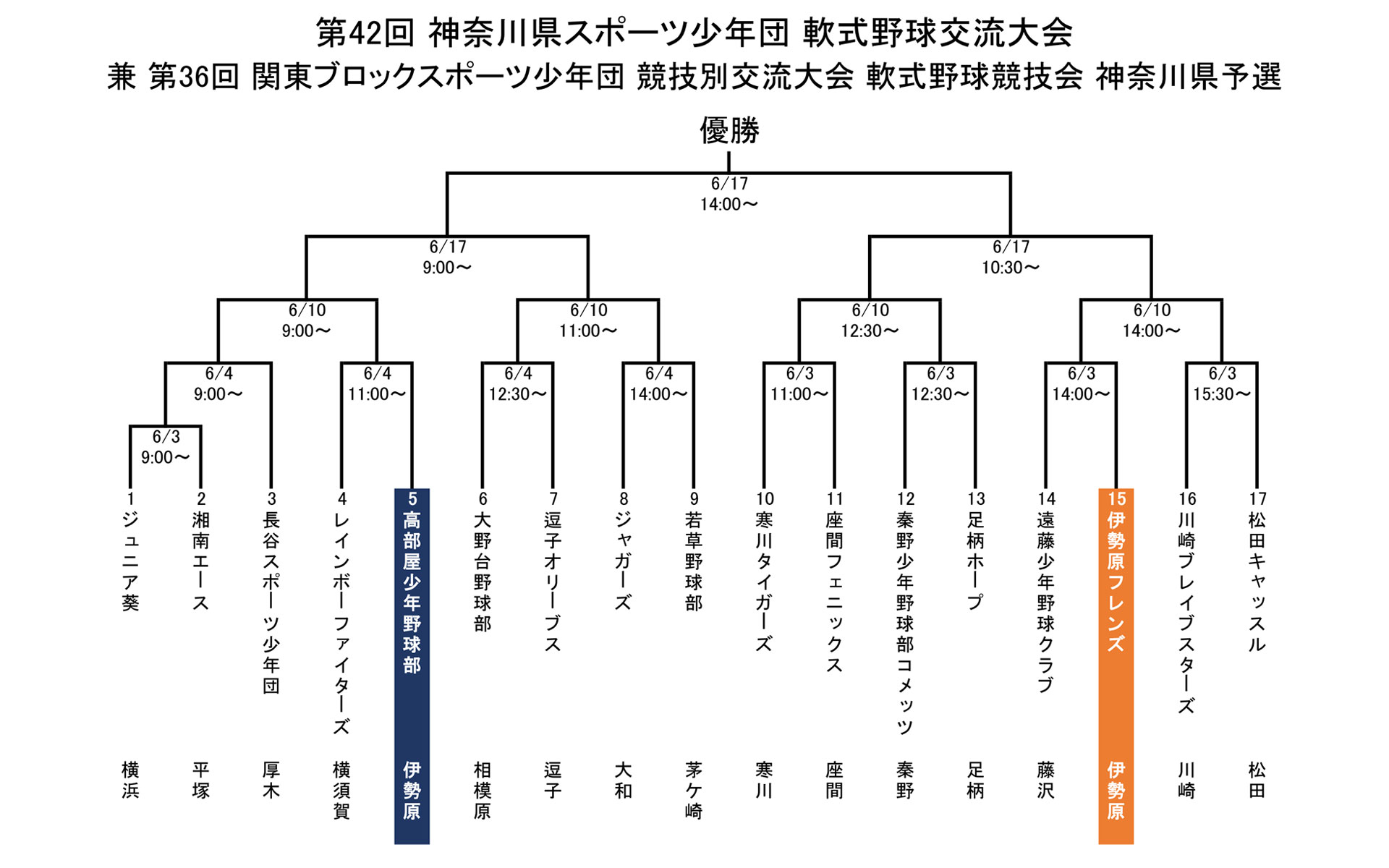 スポーツ少年団神奈川県大会の組合せが決まりました。