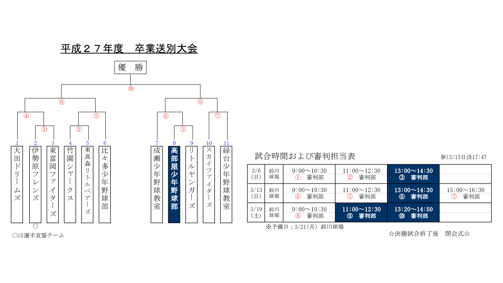 - 少年野球チーム